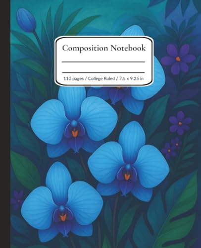 Composition Notebook College Ruled: Blue Orchid Aesthetic with Lush Tropical Leaves and Flowers | Pretty Botanical Notebook for School, College, Office & Work