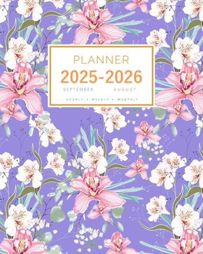 Planner September 2025-2026 August: 8x10 Large Notebook Organizer with Hourly Time Slots | Tropical Orchid Flower Design Blue-Violet