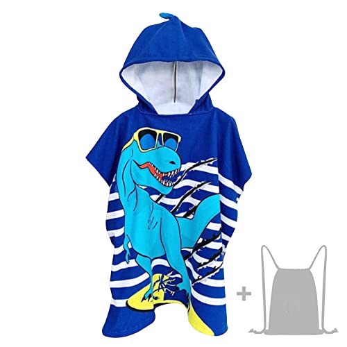 JORAKI Badhandduk med huva för barn, poncho för barn, badhandduk, mikrofiber ultramjuk och extra stor badrock för flickor pojkar barn 6-14 år – blå dinosauriemönster
