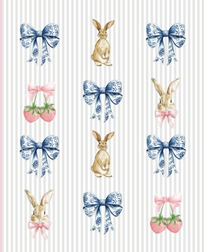 Composition Notebook College Ruled Cute Strawberry and Kawaii Bunny w/ Pink Bows, Coquette Blue Chinosierie Cover: Perfect Easter Gift, Gardening ... Writing, Journaling 7.5 x 9.25, 110 Pages