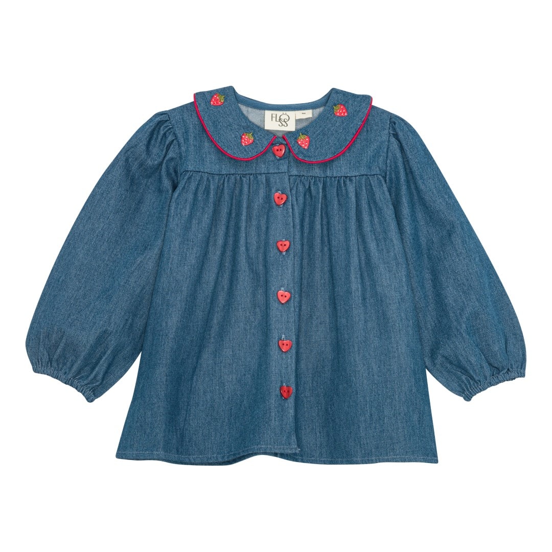 Flöss Vilma Blus Mid Blue Strawberry Mid Blue Strawberry-134 cm Blå 134 cm kvinna