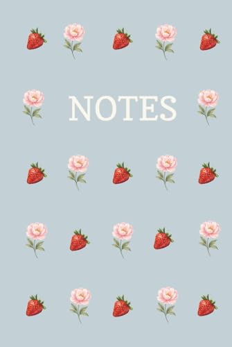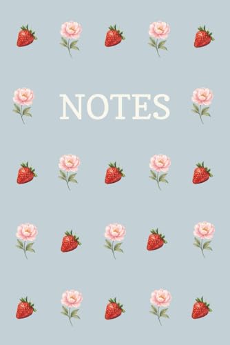 Strawberries and Peonies Notebook: Strawberry, Blue, Floral, Flower, Picnic, Pink, Journal, Fruit, Notes, Gift, Christmas, Birthday, Stocking Stuffer, Wide ruled, Paperback, 100 pages, 6x9 Inches
