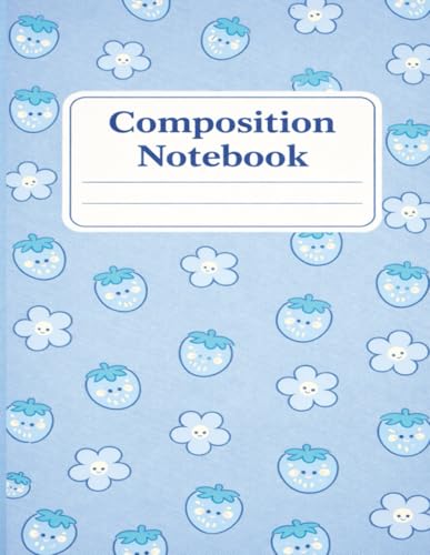 Composition Notebook: Cute Blue Strawberry Notebook for School, Writing and Notes