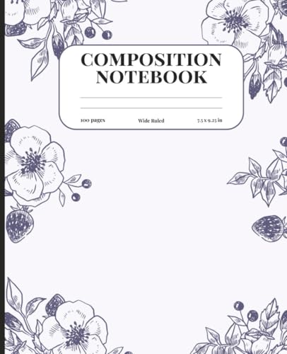Composition Notebook: Elegant Blue Floral & Strawberry Design • Wide-Ruled with Margins & Header Field • 100 Pages for Writing, Journaling, or Note-Taking