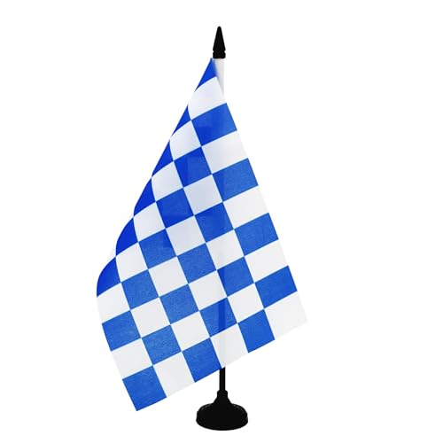 AZ FLAG - Damier marinblå och vit bordsflagga 21 x 14 cm - liten kontorsDamiers-flagga 100% polyester med 25 cm skaft och svart plastbas