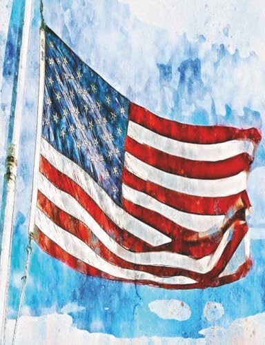 Composition Notebook: Watercolor American Flag Print | Red, White, and Blue | 120 pages wide ruled | 7.5 X 9.25 | For teens, adults, children