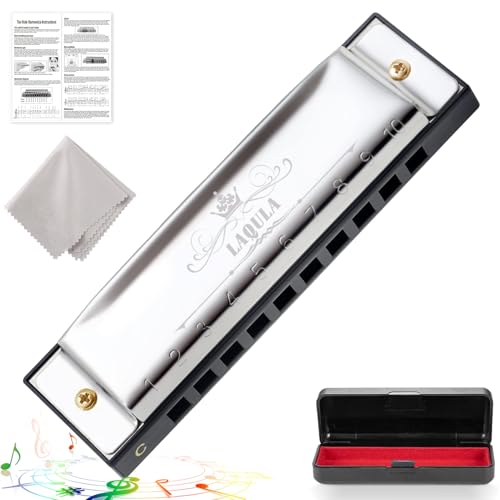 Harmonica Diatonic Blues Key of C Blues Harp Mouth Organ 10 hål med Skyddsfodral, Standard Gåvor för Vuxna, Proffs, Nybörjare och Studenter