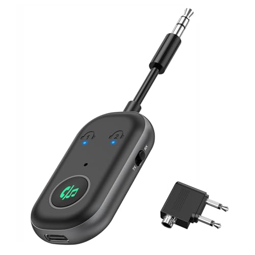 ORIA Bluetooth-adapter Aux, Bluetooth 5.3-sändare med dubbel anslutning, typ C-laddning, trådlös aux-ljudadapter för flygplan, skrivbord, dator, TV-apparater