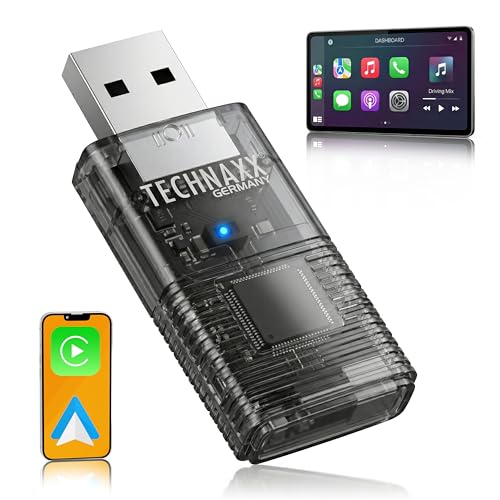Technaxx Trådlös CarPlay & Android Auto Adapter – Uppgradering från Kabel till Trådlös, 2,4/5GHz WiFi & Bluetooth 4.2, Plug & Play med USB-C & 90° Adapter – TX-346