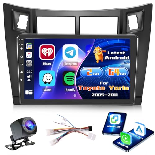 Inefala 2+64G Radio för Toyota Yaris 2005-2011 Android 13 med trådlös CarPlay Android Car, 9 tums bilradio bakifrån Bluetooth WIFI 26UI GPS FM EQ SWC AHD bakifrån kamera