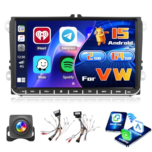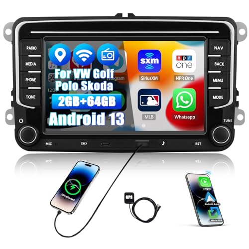 2G + 64G CAMECHO Android 13 Bilradio för VW Golf 5 Polo sittplats Skoda med Navi Carplay Android bil, 7 tum Double Din Car Radio Touch Display med Bluetooth Mirror länk FM/RDS WiFi SWC och USB