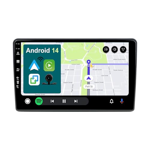 YUNTX Android 14 2 Din Radio Navigation för Volkswagen Tiguan 2009-2017: [Integrerad CarPlay/Android Auto/GPS] -IPS 2.5D 9 Tum Pekskärm-DAB/Bluetooth 5.0/Ratt Kontroll/Mirror-Link