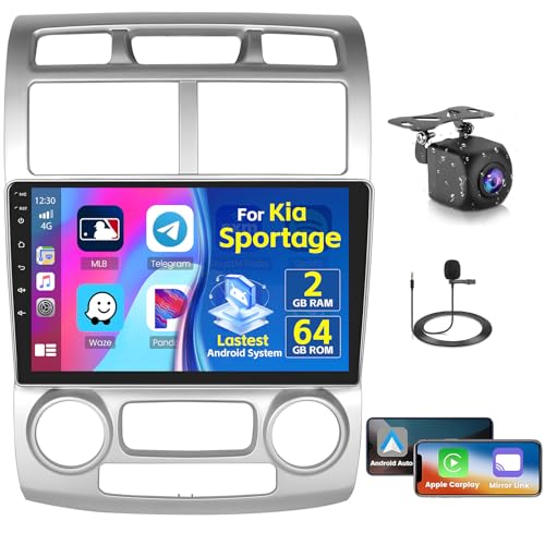 Inefala 2+64G Radio för Kia Sportage 2005-2010 Android med trådlös CarPlay Android Car, 9 tums bilskärm Bluetooth WIFI 26UI GPS FM EQ SWC AHD bakre kamera