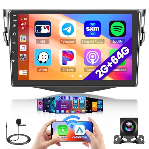 Hikity 2 + 64G Android Car Radio för Toyota RAV4 2007-2011, Carplay Android Auto Mirror Link, 9 tums pekskärm GPS Bluetooth WiFi FM RDS EQ SWC 2USB