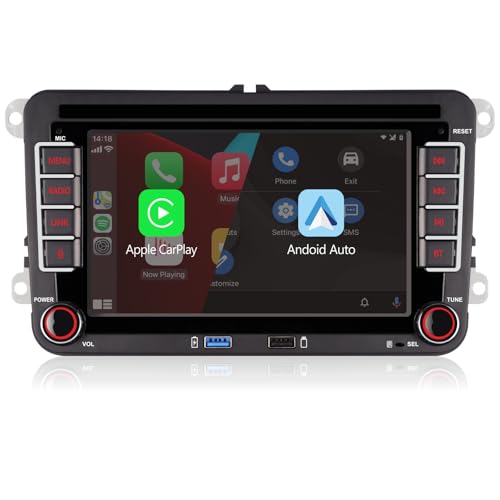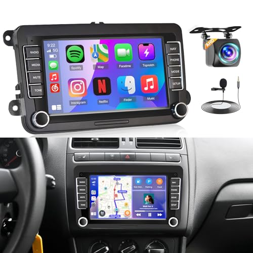 LXKLSZ Double din Autoradio Kompatibel mit kabelloses CarPlay Android Auto mit 7 Zoll IPS Bluetooth/FM/AM Radio/USB/hohe Leistung für VW Golf 5 6 Passat Jetta Caddy EOS T5 Tiguan CC Polo