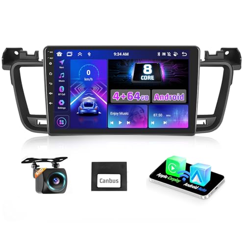 8 Core 4+64G Android 13 Car Radio for Peugeot 508 2011-2018 with Wireless Car Radio & Android Auto & MirrorLink, 9 Inch IPS Touch Screen Car Stereo with Bluetooth 5.0/GPS/Backup