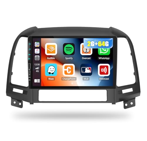 2G + 64G CAMECHO Android 13 bilradio för Hyundai Santa Fe 2006-2012 med Navi Carplay Android Auto Auto Double Din Car Radio med 9 tums skärm en Bluetooth RDS/FM spegel länk + bakkamera