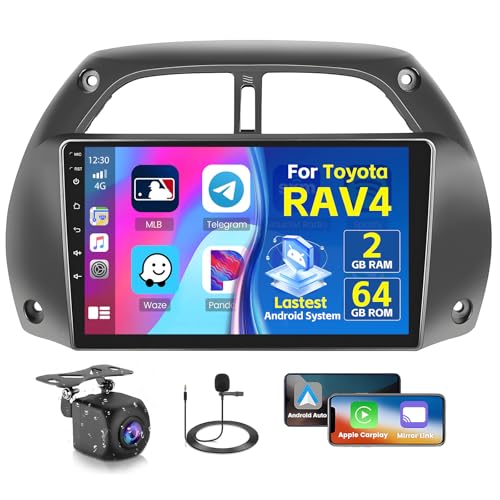 Inefala 2+64G Radio för Toyota RAV4 2001-2006 Android med trådlös CarPlay Android Car, 9 tums bilskärm med Bluetooth WIFI 26UI GPS FM EQ SWC AHD bakre kamera
