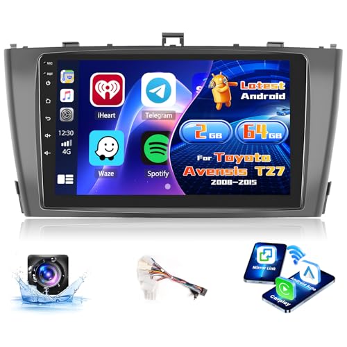 Inefala 2+64G Radio för Toyota Avensis T27 2008-2015 Android med trådlös CarPlay Android Car, 9 tums bilskärm Bluetooth WIFI 26UI GPS FM EQ SWC AHD bakifrån kamera