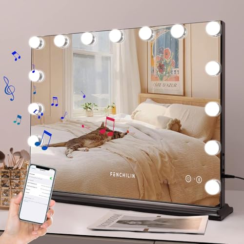 Bluetooth Hollywood spegel med belysning, 15 dimmer-LED-lampor, sminkspegel