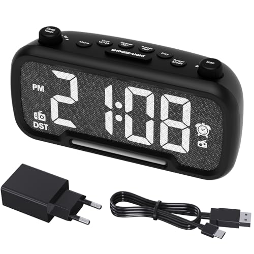 Radioväckarklocka med Bluetooth-högtalare, digital väckarklocka med Type-C-laddningsport, nattlampa, snooze, dimmer, USB-laddare, batteribackup, klockradio Nätdriven sängklocka i tyg