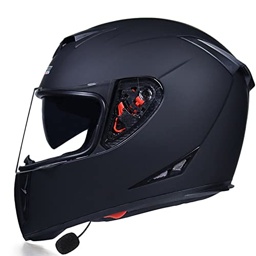DOPORA Motorcykel Bluetooth-hjälm, Full Face Inbyggd Bluetooth-intercom Vattentät MC-hjälmar Bluetooth-modulära hjälmar Dubbla visir ECE-godkända för män kvinnor,Matte black ,XL 61~62cm