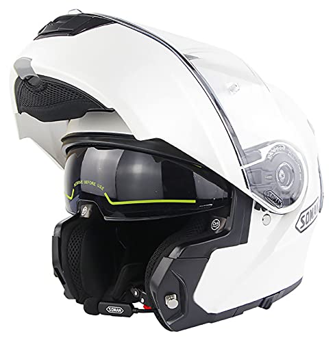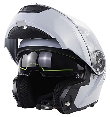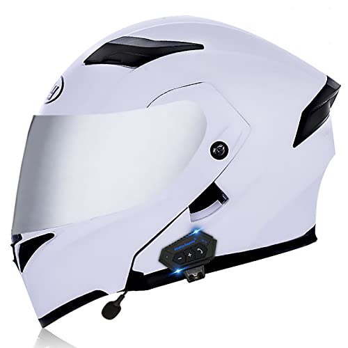 Bluetooth Modular Full Face Motorcykelhjälm - DOT/ECE -Godkänd - Flip Up Front MC -Hjälm Dubbel Visir - Scooter Racing Crash Hjälmar För Vuxna Män Och Kvinnor Pearl White,L