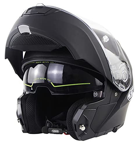 JianJud Bluetooth Modular Full Face Motorcykelhjälm - DOT/ECE -Godkänd - Flip Up Front MC -Hjälm Dubbel Visir - Scooter Racing Crash Hjälmar För Vuxna Män Och Kvinnor Matte Black,L