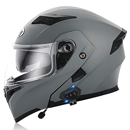 Bluetooth Modular Full Face Motorcykelhjälm - DOT/ECE -Godkänd - Flip Up Front MC -Hjälm Dubbel Visir - Scooter Racing Crash Hjälmar För Vuxna Män Och Kvinnor Grey,XL