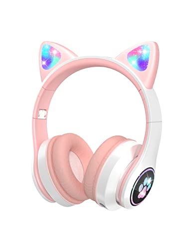 VuyKoo Bluetooth Casque Audio Enfants avec HD Microphone/Lumières LED, Ecouteurs Enfants du Volume Limité 85dB, Son Stéréo Casque Audio Enfants pour Smartphone,iPad,Tablet,Kindle,Ecole (Rose)
