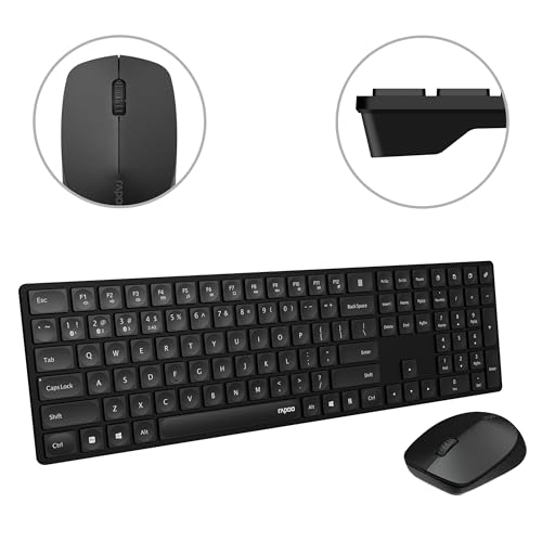 Rapoo trådlös mus + tangentbord (datormus, tangentbord, trådlös, Bluetooth, 1 300 DPI, USB-mottagare) svart