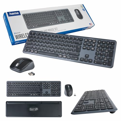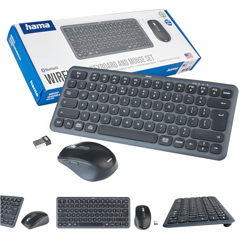 Hama trådlöst tangentbord och mus wkm-500 svart-grå (Qwerty polsk chip, multi-device, bluetooth, USB-mottagare, tyst, ergonomisk)