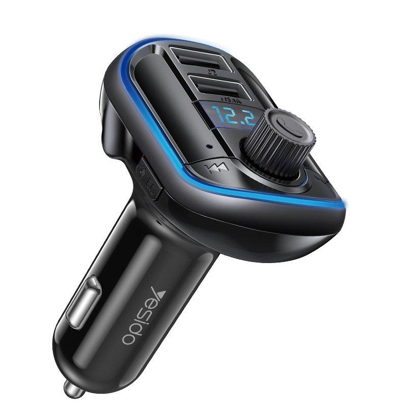 YESIDO Y44 Bluetooth FM-sändare för bil med 2 USB-portar och ljudadapter