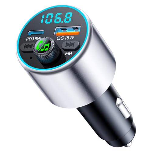 EOIWUY Uppgraderad Bluetooth 5.3 Biladapter, [Snabbladdning] Bil Bluetooth FM-sändare med kraftfull PD36W & QC3.0, [HiFi Kristallklart Ljud] Trådlös Bil Laddare Adapter Handsfree Biltelefon Kit