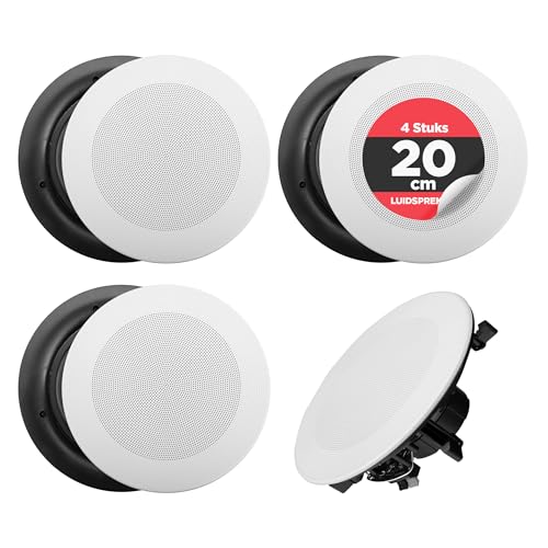 Pyle 8" Bluetooth Ceiling/Wall Speaker Kit, 250W Flush Mount 2-Way Home Speakers, 4 Speakers with Wireless Music Streaming, 4-Channel Amplifier, Quick Install, Round & Square Grills, 11.2" x 3.9" Inch