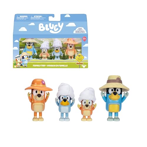Bluey 4-pack figurer, Family Trip, Vänner redo för äventyr IR-ledade figurer, barnseriedockor, exklusiva leksaker, berömda (BLYA0200)