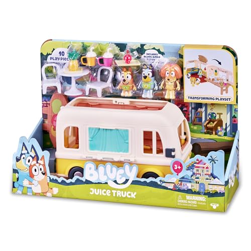 Bluey - Juice Truck Playset, Juice Truck Playset, 3 ledade figurer i serien, mattillbehör och dekorativa klistermärken, för pojkar och flickor +3 år, berömda (BLY48000)