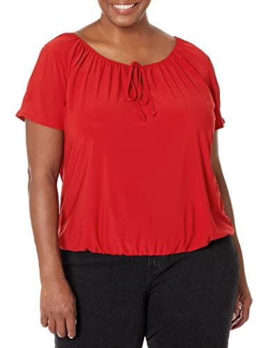 Queen Kerosin Damblus med tropiskt mönster V-ringad kortärmad blus med kort ärm lös passform mönstrad upplaga, röd, M