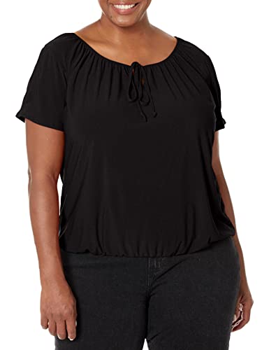 Desires dam Mössa ärm kort blus Bomull, Svart, M