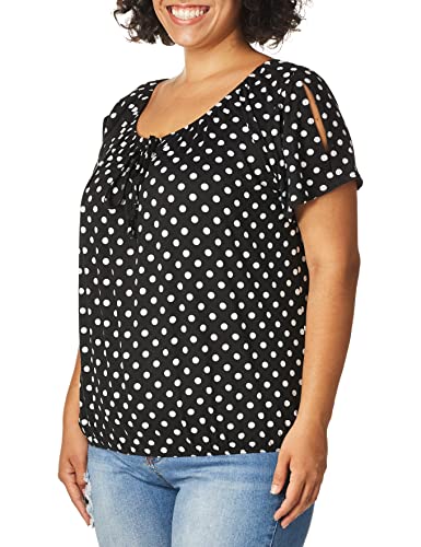 Star Vixen Dam Kort/Slit Ärm Nyckelhål Slips Bonde Topp Bubble Hem Blus