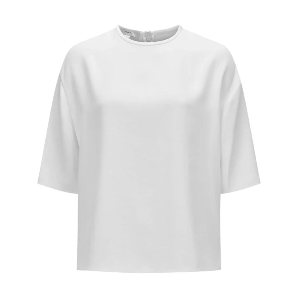 Vince, Toppar , Dam, S, Polyester, Vit Crepe Blus Rund Hals Kort Ärm