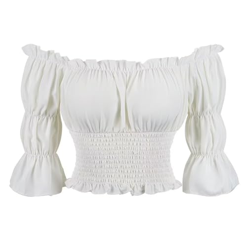 Herr renässans topp medeltida kort ärm off axeln pirat skjorta gotisk bonde blus smocked Boho vit XS