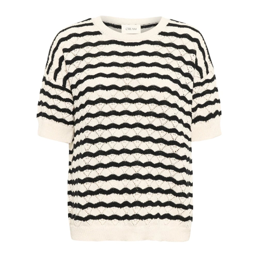 Cream, Stickade Tröjor , Dam, L, Bomull, Randig Stickad Blus Kort Ärm