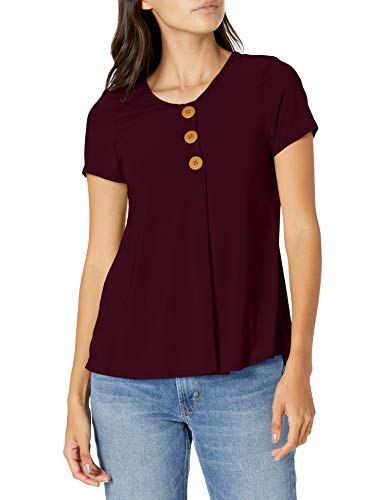 Star Vixen kvinnors armbågsärm veckad detalj linne blus, Plommon, 1X