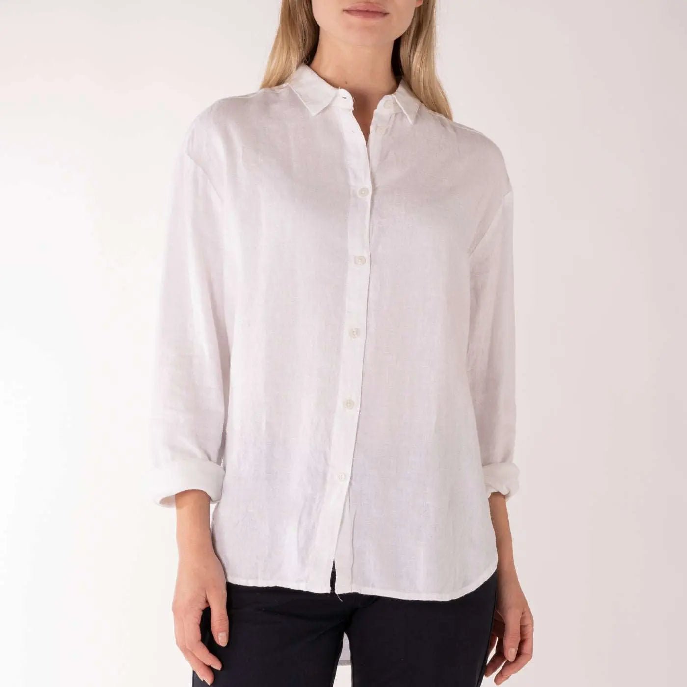 Balou Dam Bomull Linne Överdimensionerad Skjorta