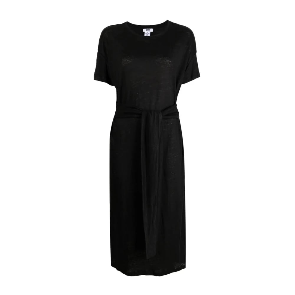 Dkny, Klänningar , Dam, M, Linne, Casual Svart Linne Blus med Slips