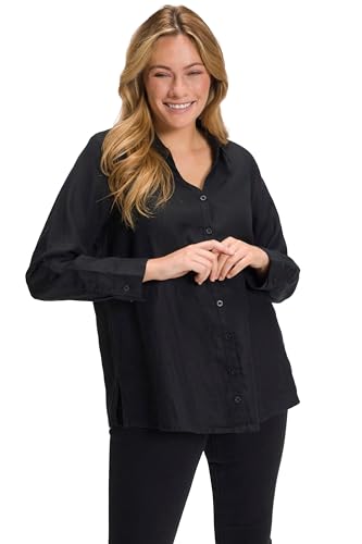 Ulla popken damer stora storlekar överdimensionerade blus i plusstorlek, linne, öppen krage, långärmad 794882, svart, 58-60