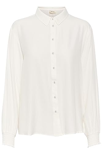 Cream Dam långärmad avslappnad passform knapp up blus krage dam, Snövit, 42