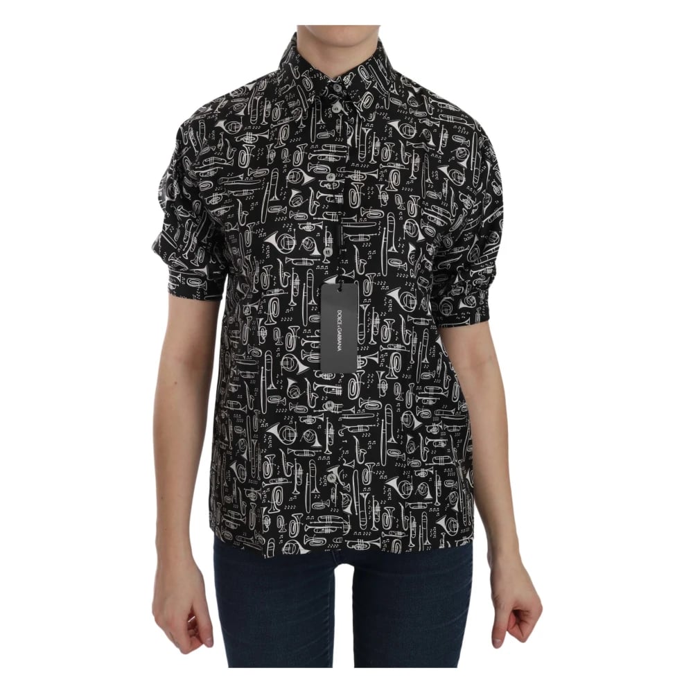 Dolce & Gabbana, Blusar & Skjortor , Dam, XS, Svart Blus med Krage och Musikinstrument