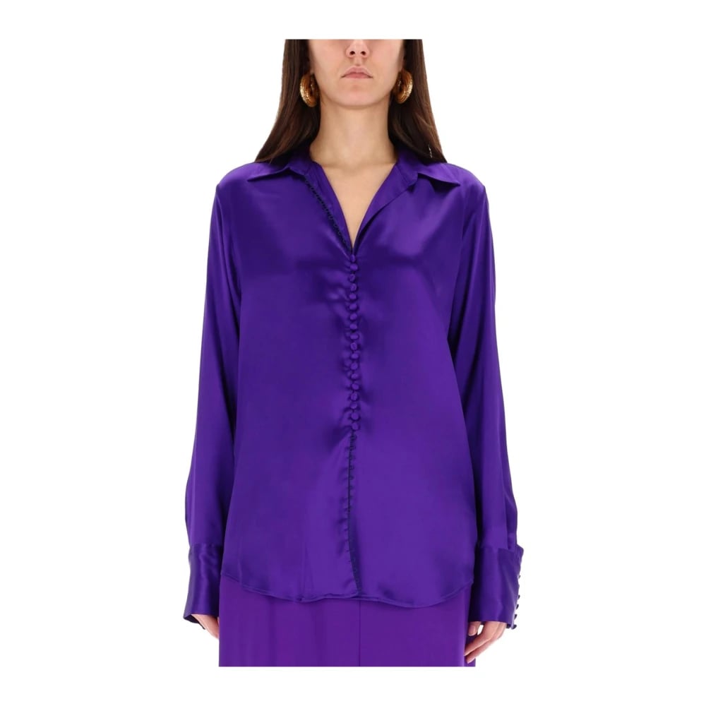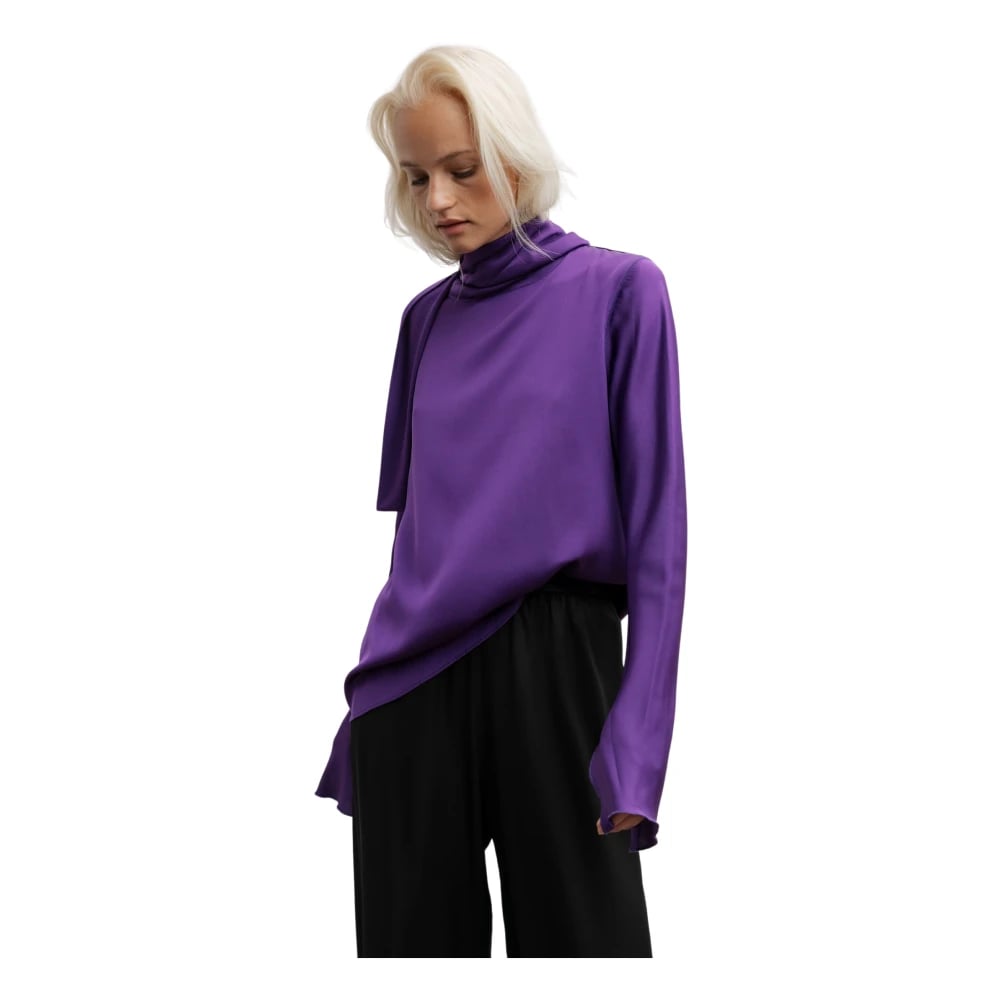Ahlvar Gallery, Blusar & Skjortor , Dam, S, Silke Lila Blus med Dubbel Krage